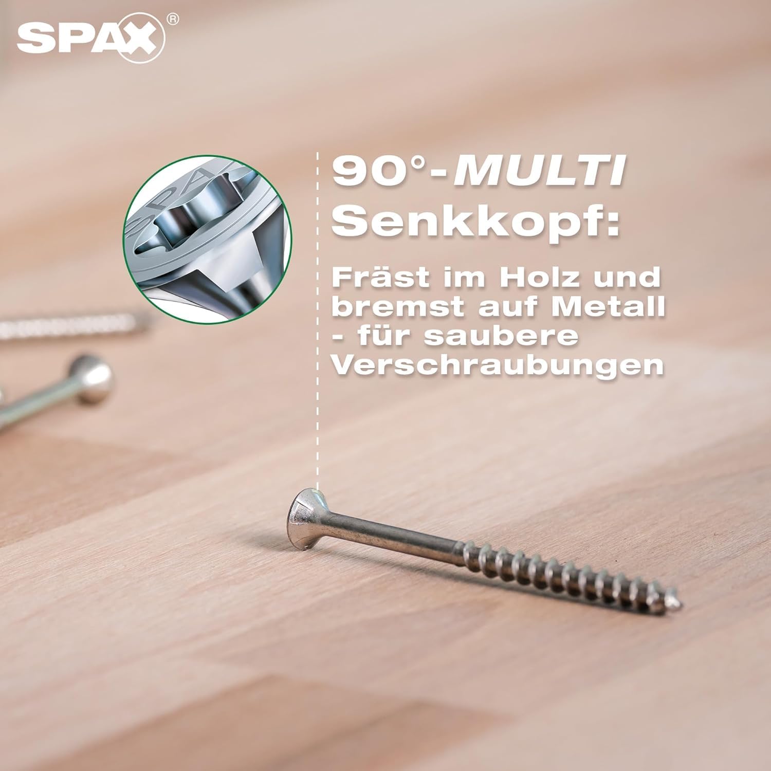 Bei weichem Holz kommst du in der Regel ohne Vorbohren klar, weil die SPAX-Geometrie das Material gut verdrängt. Bei 100 mm Länge und Hartholz würde ich dir aber immer raten, kurz anzubohren, um zu verhindern, dass dir das Holz am Ende doch mal aufreißt. Das macht die Arbeit entspannter und das Ergebnis sieht einfach sauberer aus.