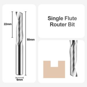 Der Fräser verfügt über einen Schaftdurchmesser von 6 mm und ermöglicht einen Schnittdurchmesser von ebenfalls 6 mm. Die Schnittlänge beträgt 22 mm bei einer Gesamtlänge des Werkzeugs von 50 mm.
