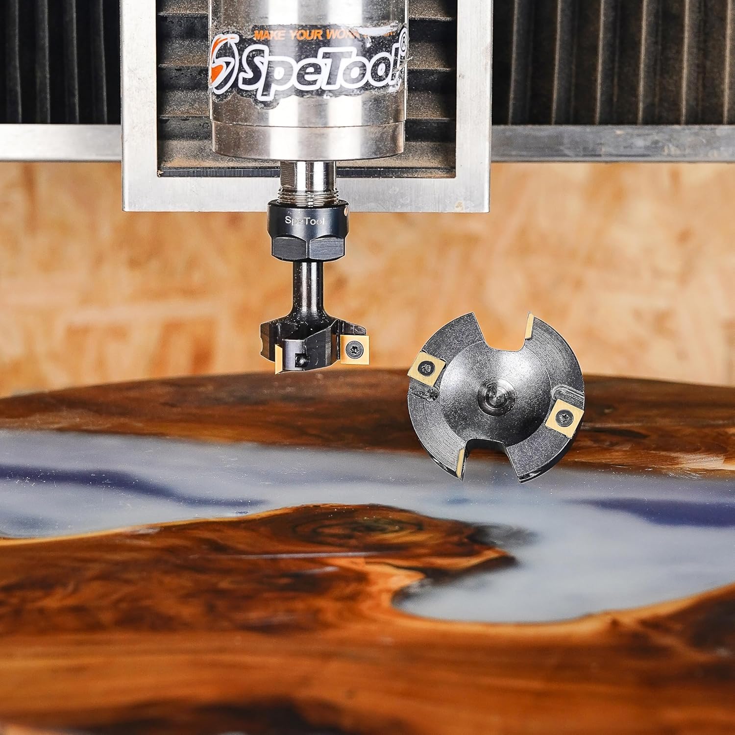 Dieser Planfräser ist primär für den Einsatz in stationären Frästischen oder CNC-Oberfräsen konzipiert. Er eignet sich hervorragend für das Abrichten von unebenen Bohlen, das Planen von Epoxidharz-Tischen (River Tables) sowie für die großflächige Nivellierung von Leimholzplatten. Das Werkzeug ist für Harthölzer, Weichhölzer und verleimte Holzwerkstoffe optimiert. Metall oder mineralische Werkstoffe dürfen mit diesem Fräser nicht bearbeitet werden.