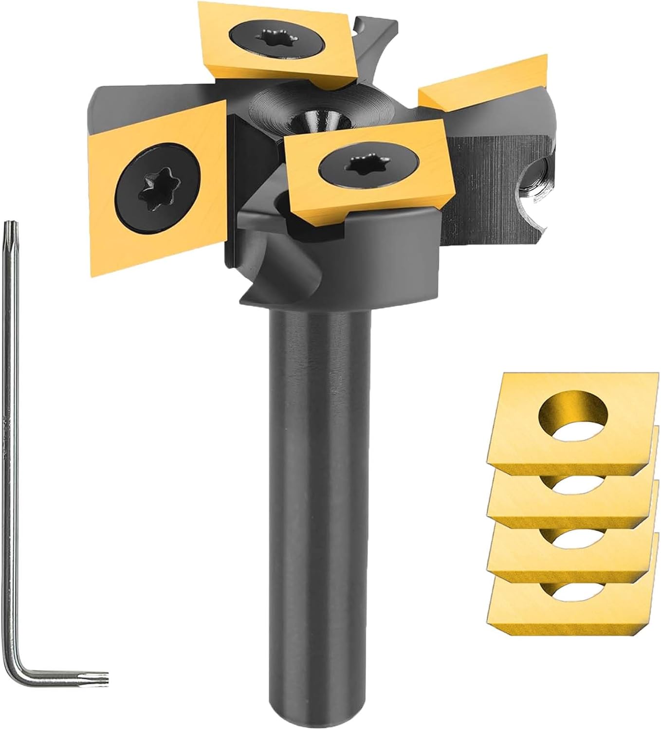 - Kostensenkung durch Wendeplatten: Dank der 4 austauschbaren Hartmetallmesser tauschst du bei Verschleiß lediglich die Klinge aus, statt den gesamten Fräser zu ersetzen.