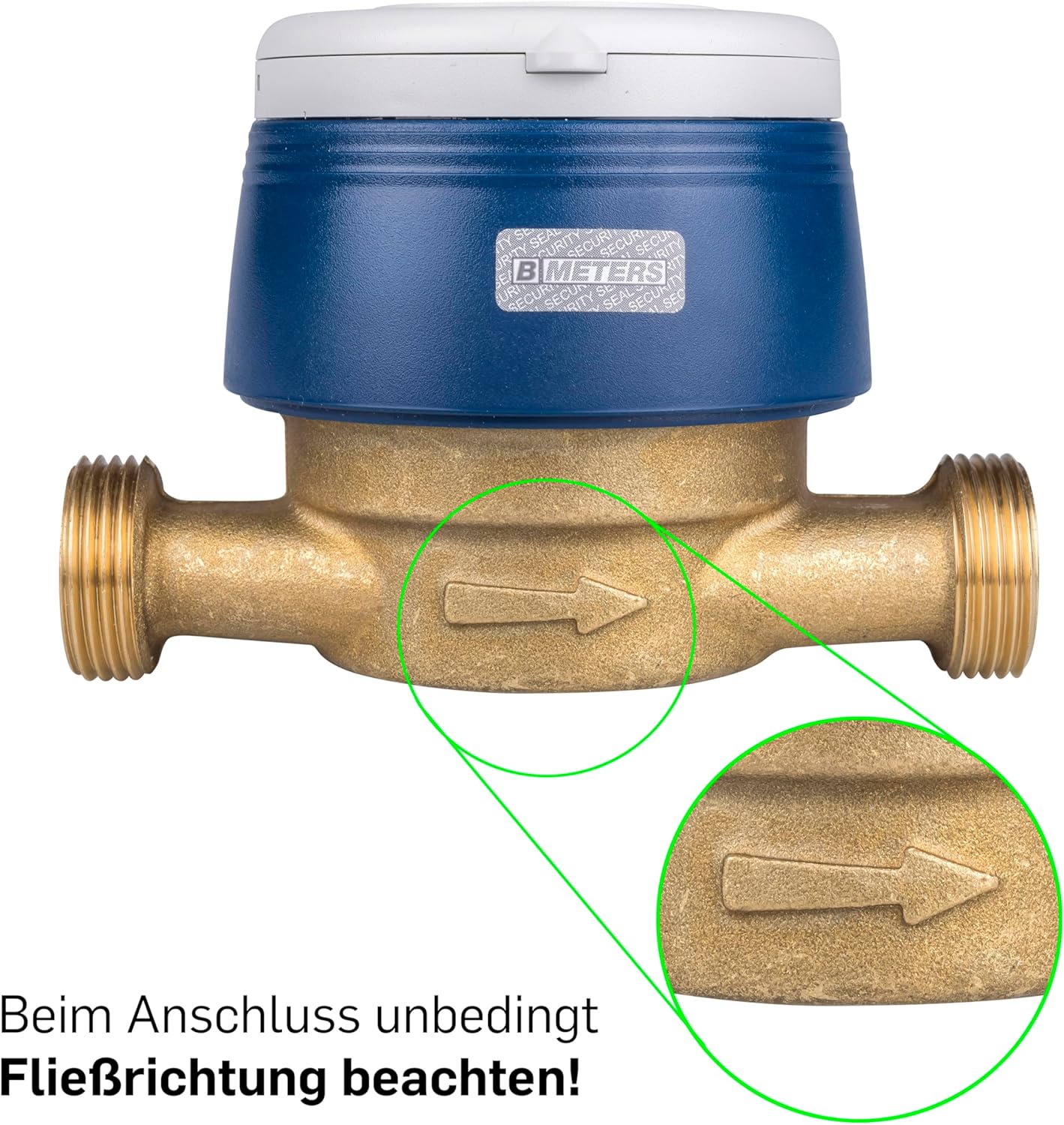 - Montiere den Zähler stets mit dem Ziffernblatt nach oben gerichtet, um eine korrekte Betriebsfunktion und Ablesbarkeit sicherzustellen.