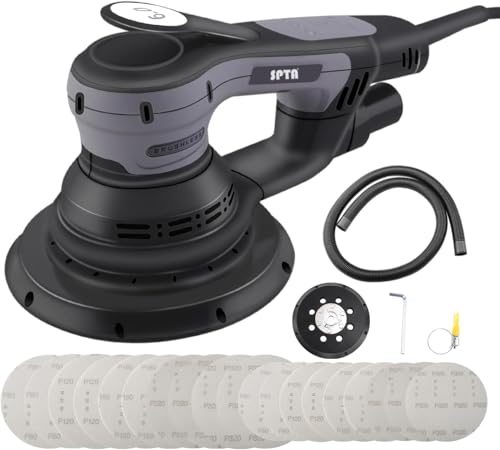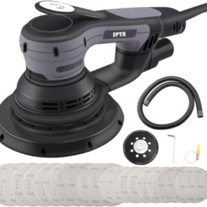 SPTA Elektrischer Exzenterschleifer, Bürstenloser Exzenterschleifer,mit 125mm/150mm Schleifteller,3mm Schleifhub, 5-Stufiger Drehzahlregelung bis 4.000-10.000 U/min, 20x Klett-Schleifpapier.-OS603EU