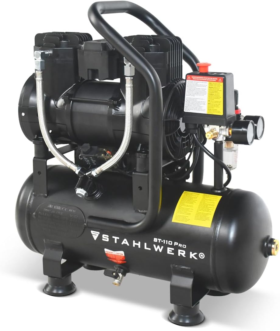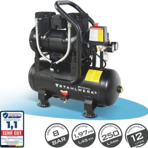 Der STAHLWERK Kompressor mit 10 L (ST-110 Pro) ist die ideale Lösung für Profis und ambitionierte Heimwerker, die mobil und autark in der Werkstatt oder bei Montageeinsätzen arbeiten wollen. Mit seiner kompakten Bauweise und dem extrem leisen Betrieb eignet er sich perfekt für den Innenbereich, ohne dass du dir oder deinen Nachbarn den Gehörschutz rauben musst.