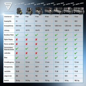 Technische Eigenschaften für das Produkt STAHLWERK Kompressor mit 10 L