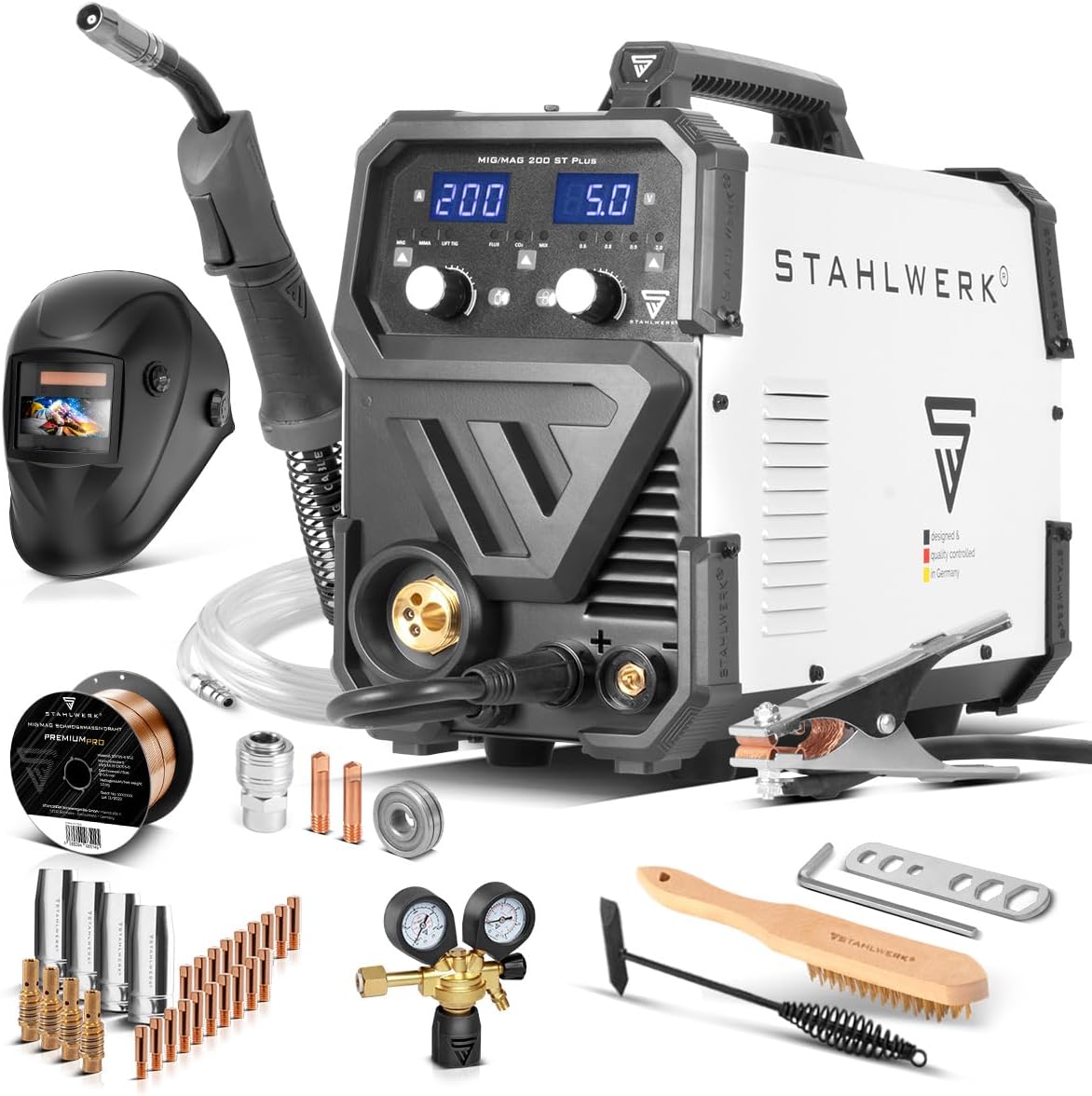 Das STAHLWERK Schutzgasschweißgerät MIG/MAG 200 ST ist die ideale Wahl für anspruchsvolle Heimwerker, ambitionierte Hobby-Schweißer und professionelle Werkstätten, die Flexibilität in einem kompakten Gehäuse suchen. Dank der synergischen Steuerung und der 4-in-1 Funktionalität erzielst du bei unterschiedlichsten Metallarbeiten sofort präzise und saubere Schweißergebnisse. Es ist das perfekte Werkzeug für alle, die eine zuverlässige Allround-Lösung für Schweißprojekte an Stahl, Edelstahl oder Blechkonstruktionen in der Werkstatt benötigen.