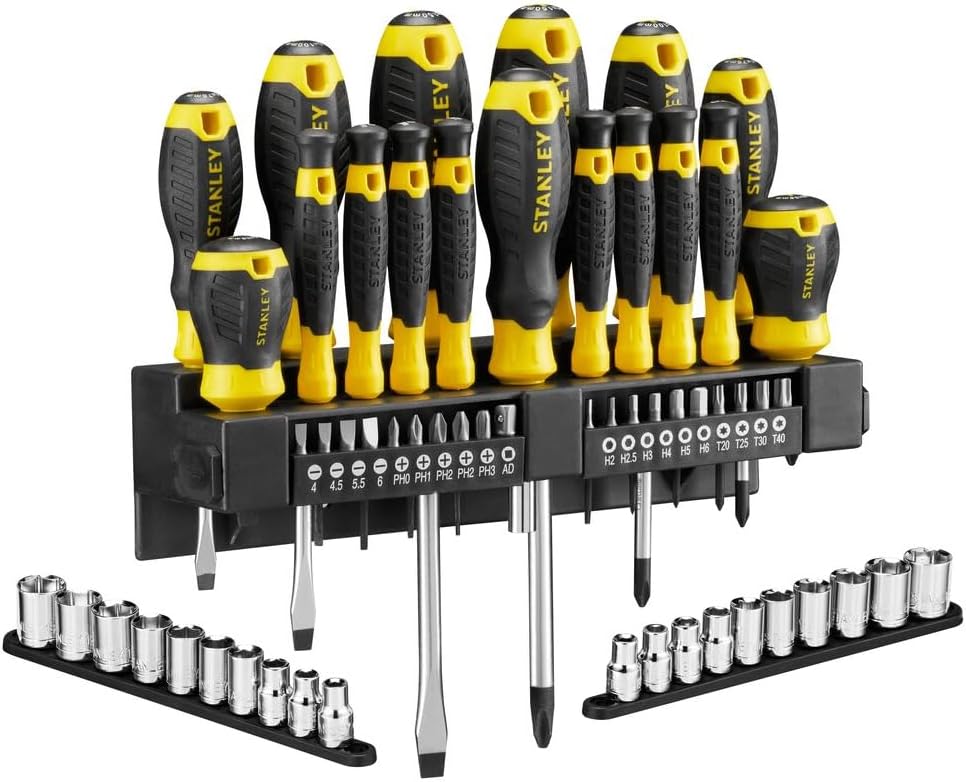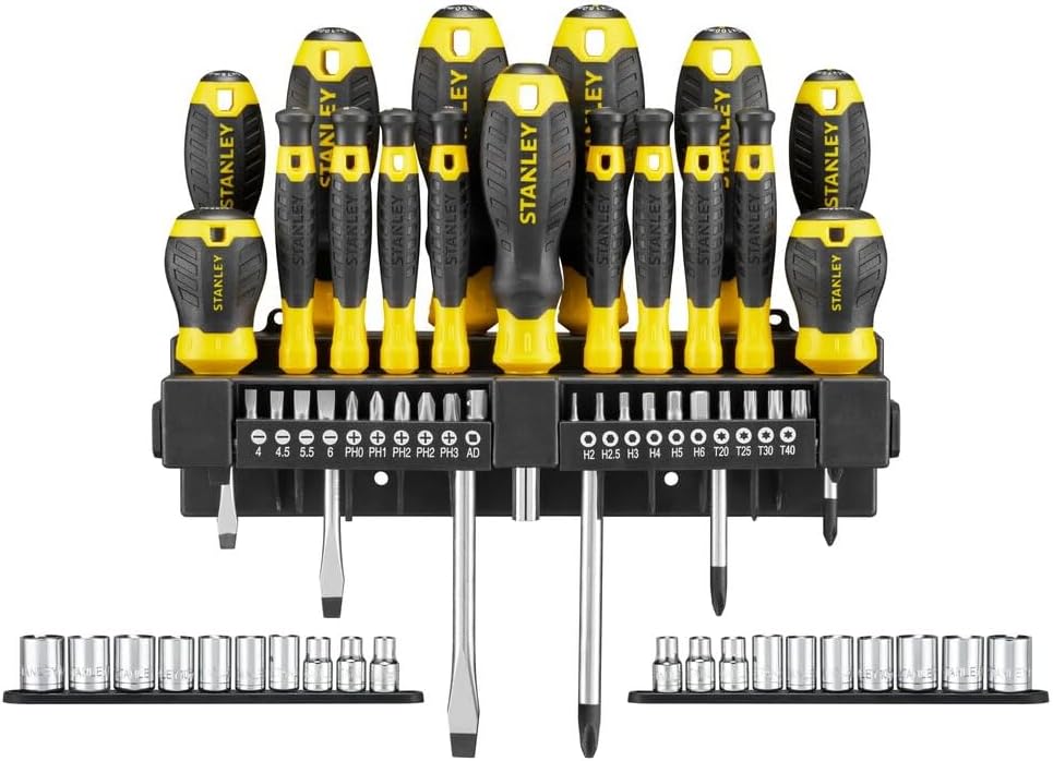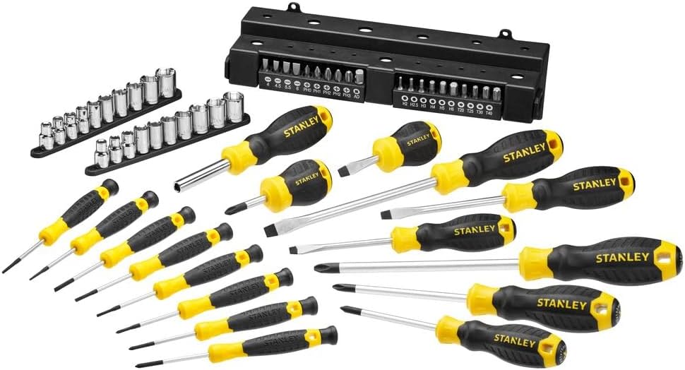Ich rate Anfängern immer zu einem soliden, übersichtlichen Set wie diesem, statt sich sofort mit Billig-Sets einzudecken, die nach zwei Schrauben rundgedreht sind. Stanley liefert hier eine Qualität, die den Job sofort einfacher macht, ohne dass man sich über abrutschende Klingen ärgern muss. Man hat sofort alles Nötige griffbereit, was beim ersten eigenen Projekt viel Frust erspart.