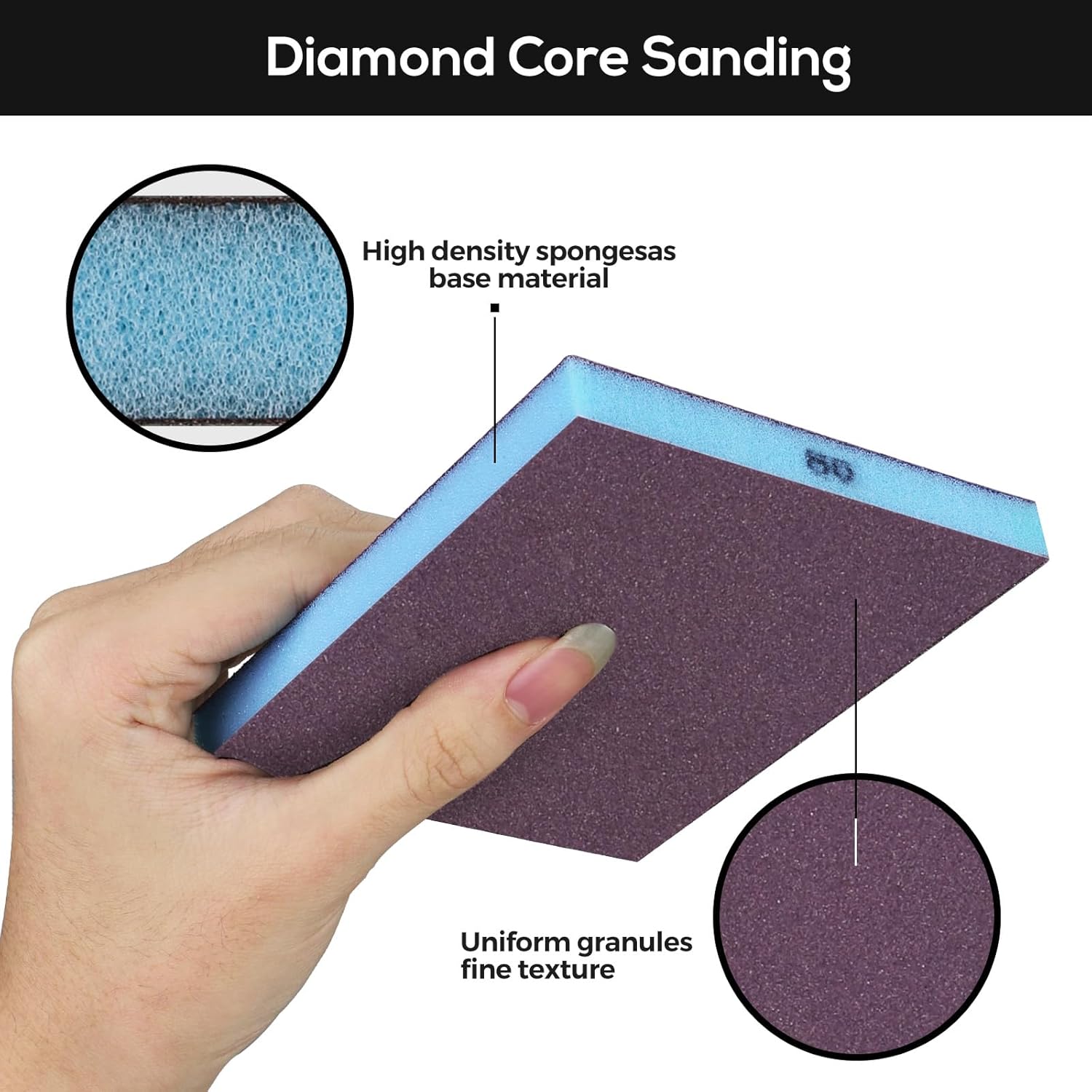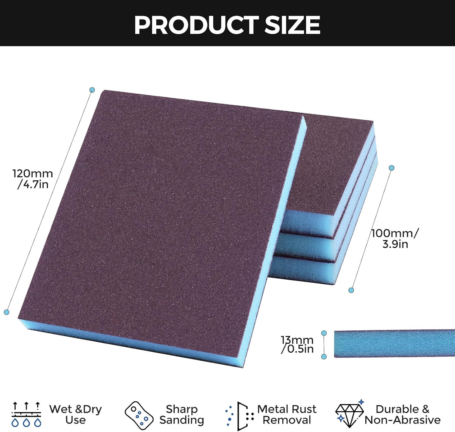 - Vermeide übermäßigen Druck beim Schleifen; lass das Schleifkorn arbeiten, um die Lebensdauer des Schwamms zu maximieren.