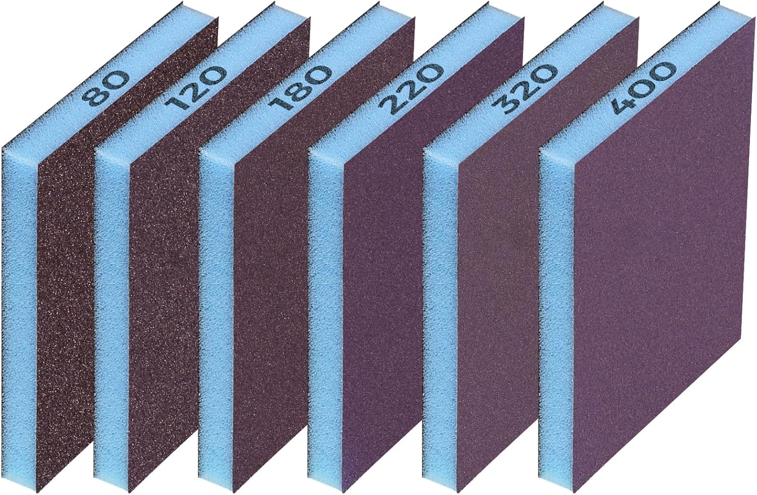 - Vollständiges Körnungsspektrum: Mit 6 verschiedenen Abstufungen (80 bis 400) bist du für jedes Projekt vom Materialabtrag bis zum Feinschliff gerüstet.