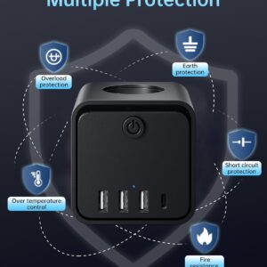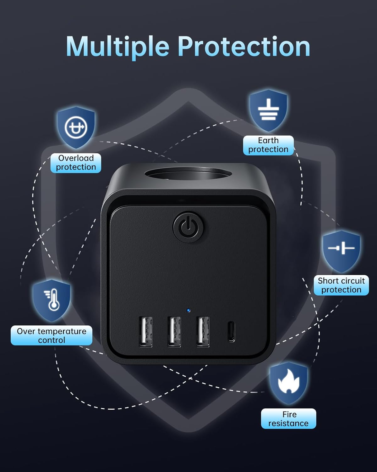 Dieser 7-in-1 Steckdosenwürfel mit USB ist die ideale Lösung für Handwerker, Techniker und Anwender in der Werkstatt, die auf begrenztem Raum maximale Konnektivität benötigen. Er vereint drei AC-Steckplätze sowie vier USB-Anschlüsse in einem kompakten Gehäuse, um Ladegeräte und Werkzeuge effizient und platzsparend mit Strom zu versorgen.
