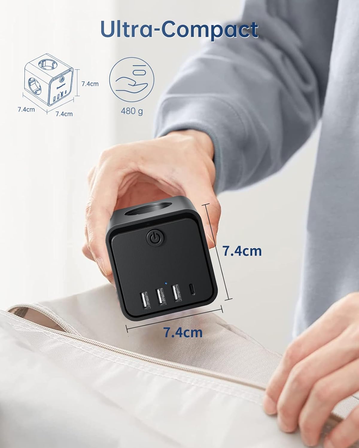 In unserem Werkstatt-Alltag sehen wir oft Kabelsalat, der nicht nur Zeit kostet, sondern auch ein Sicherheitsrisiko darstellt. Der Steckdosenwürfel mit USB,7 in 1 löst dieses Problem durch eine durchdachte Geometrie. Anstatt breite, flache Steckdosenleisten zu verwenden, die den Arbeitsplatz blockieren, nutzt dieser Würfel die Höhe. Die versetzten AC-Ausgänge erlauben es, drei Netzteile problemlos nebeneinander einzustecken, ohne dass der Gehäusekorpus des einen Steckers den nächsten Anschluss verdeckt. Dies ist ein entscheidender Vorteil gegenüber herkömmlichen Leisten.