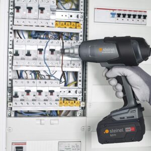 Die Steinel MobileHeat MH3 setzt einen neuen Maßstab für kabellose Heißlufttechnik. Mit einer konstanten Luftmenge von 200 l/min sorgt sie für einen kraftvollen Wärmestrom, der auch anspruchsvolle Aufgaben wie das Verschweißen von Kunststoffen oder das Schrumpfen von Kabeln effizient meistert. Die kompakte Bauform sorgt dafür, dass du auch in verwinkelten Ecken, etwa bei der Installation von Unterputzdosen, manövrierfähig bleibst.