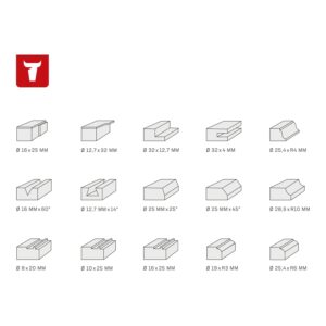 - 15 verschiedene Profile decken Standardaufgaben ab: Nut-, Abrund-, Fasen- und Bündigfräser in einem Set – erspart den Einzelkauf und spart über 30% gegenüber Einzelpreisen