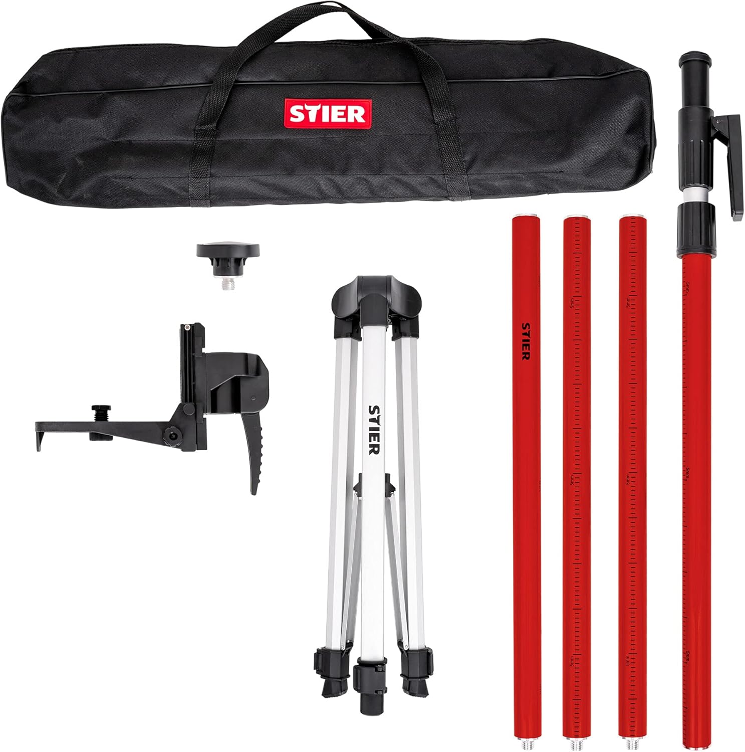 Die STIER Teleskopstange ist als universelle Halterung konzipiert, die sich problemlos mit gängigen Kreuzlinienlasern kombinieren lässt. Bitte stellen Sie sicher, dass Ihr Laser über ein passendes Gewinde oder eine entsprechende Klemmvorrichtung verfügt, um ihn sicher an der Stange zu befestigen.