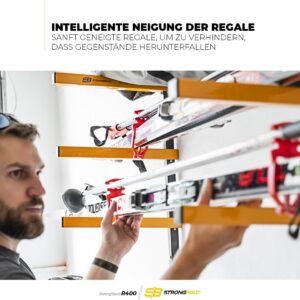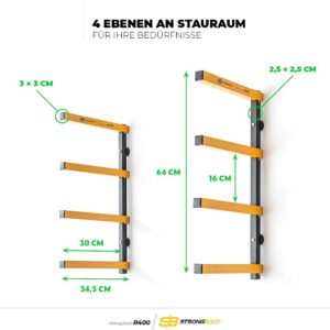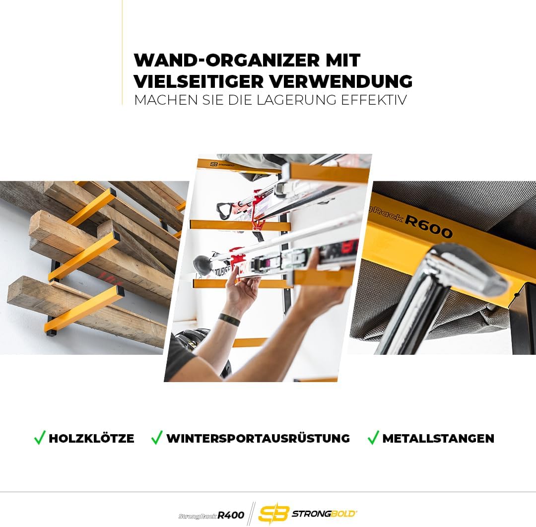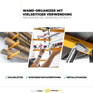 Das STRONGBOLD StrongRack R400 ist die ideale Lösung für Handwerker, Heimwerker und Profis, die in ihrer Werkstatt oder Garage massiv Platz am Boden schaffen müssen. Durch die robuste Wandmontage werden lange Gegenstände sicher verstaut und der Arbeitsbereich effizient organisiert.