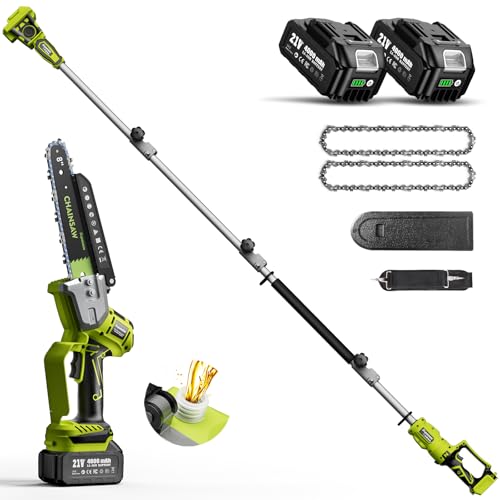 Supstable Akku Hochentaster 8000mAh & 8 Zoll Mini Kettensäge mit Akku 2 in 1, Max Reichweite bis 4,8M, Teleskop Astsäge mit 180 Schwenkbarem Motorkopf, inkl. 2 Akkus, Ladegerät und 2 Ersatzketten