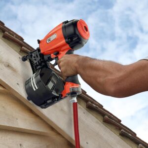 • EIGENSCHAFTEN – Bietet sequenzielle (Einzelschuss) und Kontakt (Stoß) Auslösemodi, Tiefenkontrolle durch Senkversteller für präzises bündiges Nageln, langlebige Treiberklinge, 360° multidirektionale luftabweisende Auslassöffnung, Sicherheitskontaktspitze, schlanke, eindrucksfreie Nase und weichen Gummigriff
