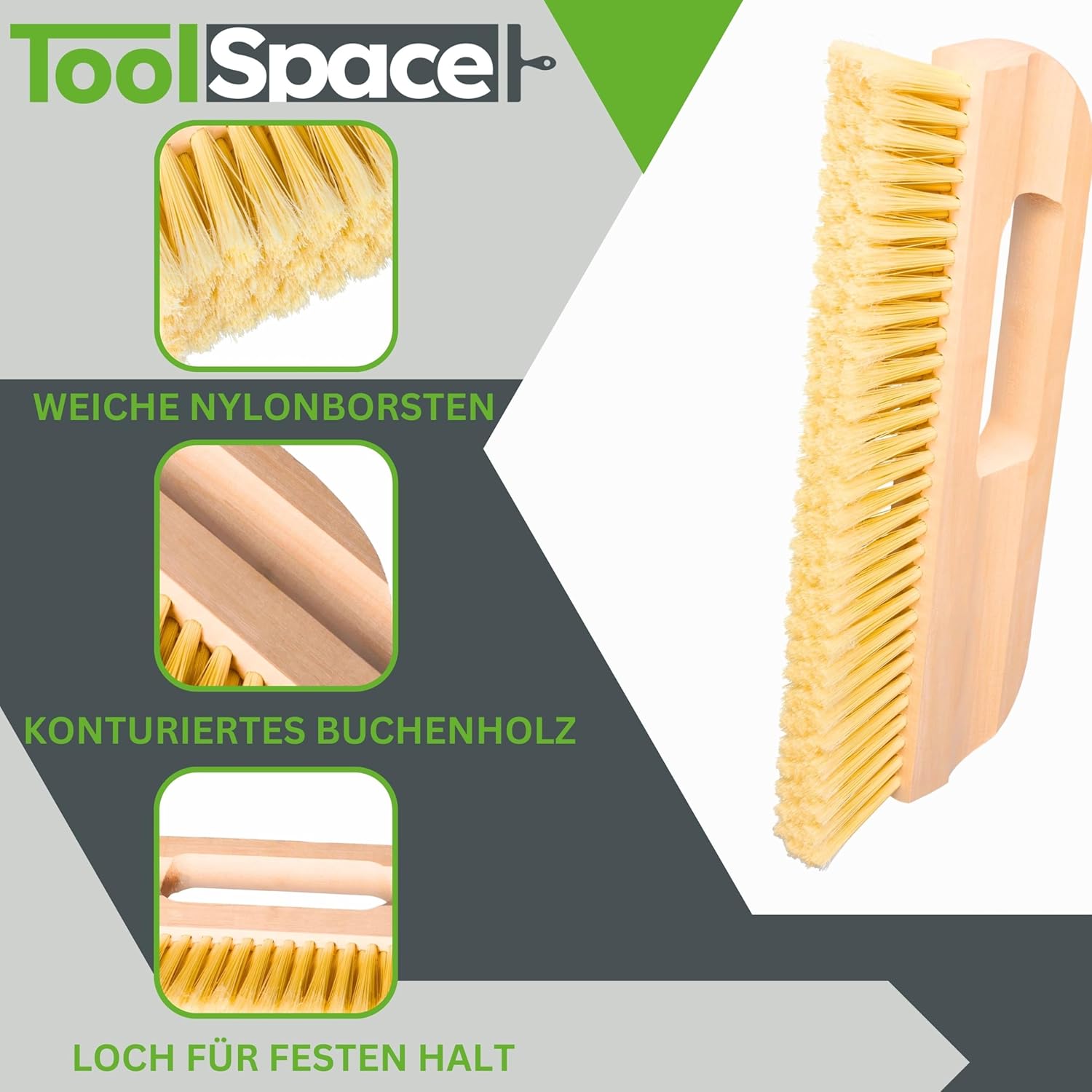 - Feuchtigkeitsresistenz: Dank der speziellen Materialwahl der Borsten wird keine Feuchtigkeit aufgenommen, was die Reinigung nach der Arbeit massiv erleichtert.