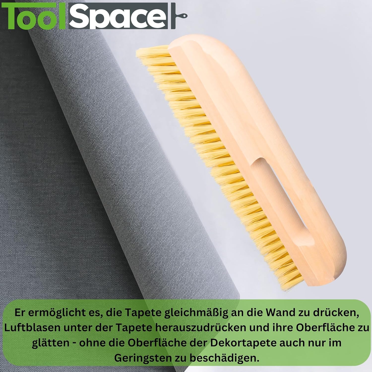 - Schonende PET-Borsten: Die Kunststoffborsten sind elastisch genug, um empfindliche Vliestapeten nicht zu zerkratzen, und fest genug, um den Kleister gleichmäßig zu verteilen.