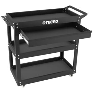 TECPO Werkzeugwagen Rollwagen mit 3 Ladeflächen - inkl. vormontierter Schublade und Antirutschmatten als Schaumeinlage zum Schutz, 300 kg Tragkraft - geeignet als Transportwagen