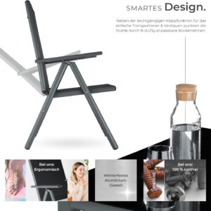 - Witterungsbeständige Konstruktion: Dank des leichten Aluminiumrahmens rostet das Set nicht und bleibt auch bei wechselhaftem Wetter stabil und einsatzbereit.
