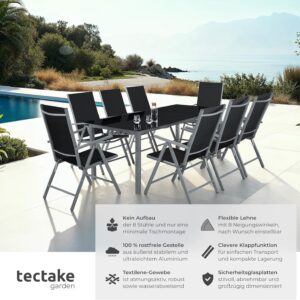 Das tectake® Aluminium Sitzgruppe 8+1 Set ist die ideale Wahl für anspruchsvolle Hausbesitzer und Hobby-Handwerker, die Wert auf eine langlebige Outdoor-Ausstattung legen. Mit diesem Set schaffst du eine flexible und wetterfeste Essgelegenheit, die sowohl durch Funktionalität als auch durch klare Linienführung überzeugt.