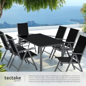 Dieses tectake® Sitzgarnitur Aluminium Set richtet sich an anspruchsvolle Hausbesitzer und leidenschaftliche Heimwerker, die ihre Terrasse oder den Balkon in einen funktionalen Rückzugsort verwandeln wollen. Das Set bietet eine ideale Kombination aus strapazierfähigen, modernen Materialien und einer hohen ergonomischen Variabilität für entspannte Stunden im Außenbereich. Es ist die perfekte Wahl für alle, die eine wartungsarme und flexibel einsetzbare Lösung für gesellige Runden suchen.