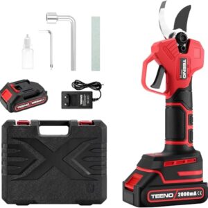 TEENO Elektrische Baumschere 21V, Professionelle Gartenschere MAX 25 mm Schnittdurchmesser, Schere Astschneider Rosenschere Kabellos mit Sicherheitsschalter, 1 * 2000mAh Akkus für 3-4 Arbeitsstunden