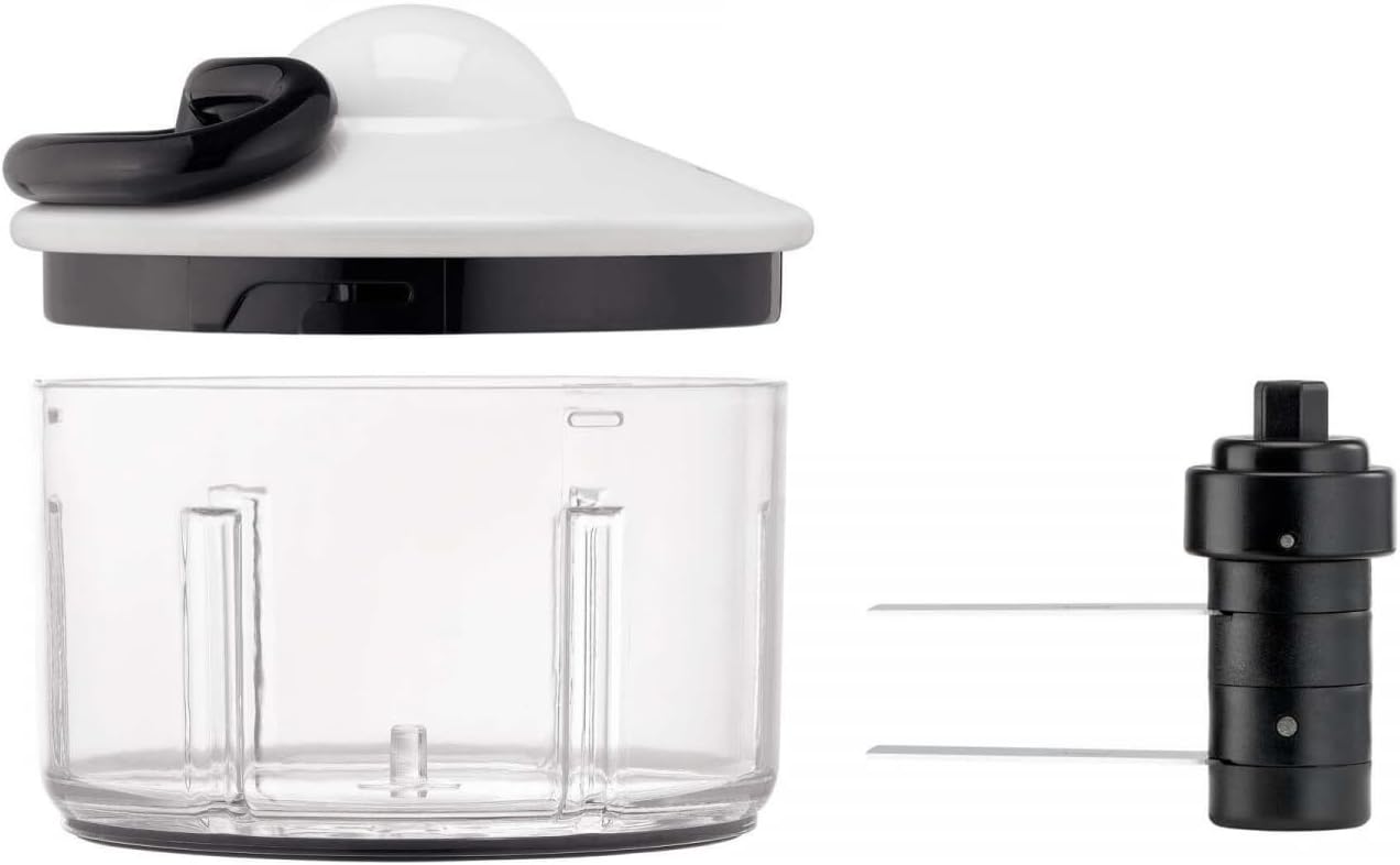 - SCHNELL UND EINFACH: Setzen Sie die Klingen ein, fügen Sie die Zutaten hinzu, schließen Sie den Deckel, drehen Sie den Griff – widerholen Sie dies für feinere Ergebnisse