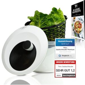 Thiru Salatschleuder Premium 5L groß - Testsieger 2025-60 Tage risikofrei testen - rutschfeste 2in1 Schleuder & Salatschüssel - ø 24,5 cm - BPA FREI spülmaschinenfest - inkl. eBook