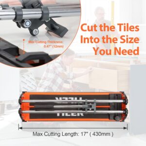 Der TILER Fliesenschneider ist für Fliesen bis zu einer Länge von 430 mm (entspricht 17 Zoll) konzipiert. Zudem ist das Gerät für Fliesen mit einer Stärke von bis zu 10 mm ausgelegt und ermöglicht somit eine präzise Bearbeitung gängiger Standardformate.