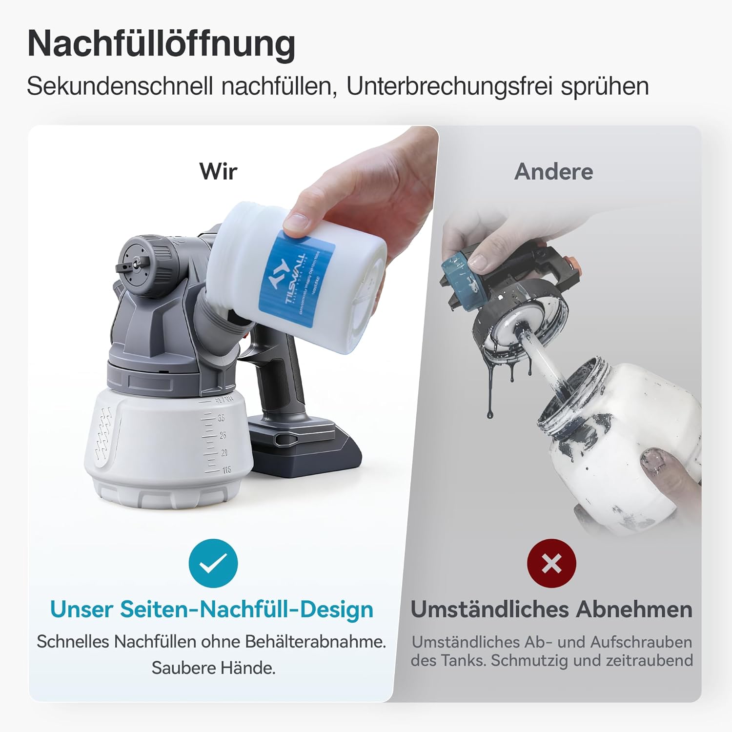 Vorteile des Produkts Tilswall Akku Farbsprühsystem,