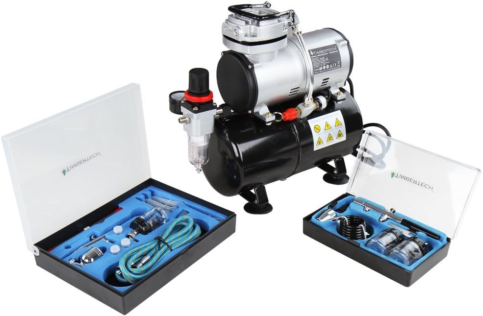 Das Timbertech ABPST06 Set ist aufgrund seiner soliden Ausstattung eine gute Wahl für Einsteiger, die ein zuverlässiges System suchen. Mit einer Bewertung von 4,4 von 5 Sternen überzeugt das Modell durch eine hohe Kundenzufriedenheit. Der enthaltene Kolbenkompressor sorgt für eine konstante Leistung, die den Einstieg in verschiedene Airbrush-Anwendungen erleichtert.
