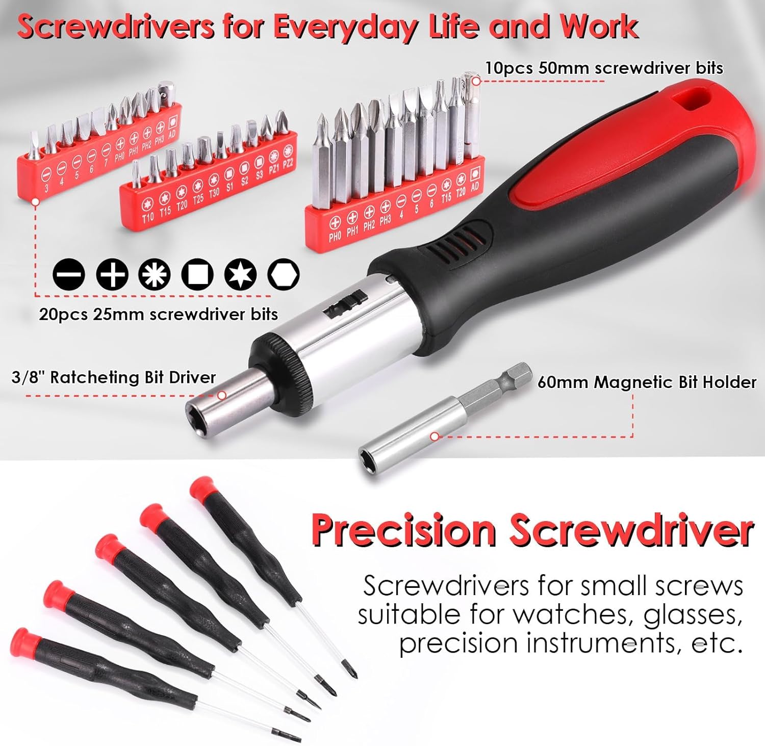 - Griffige Handhabung: Die gummierten Oberflächen der Schraubendreher und Zangen verhindern, dass dir das Werkzeug bei öligen Händen oder beim festen Zupacken wegflutscht.