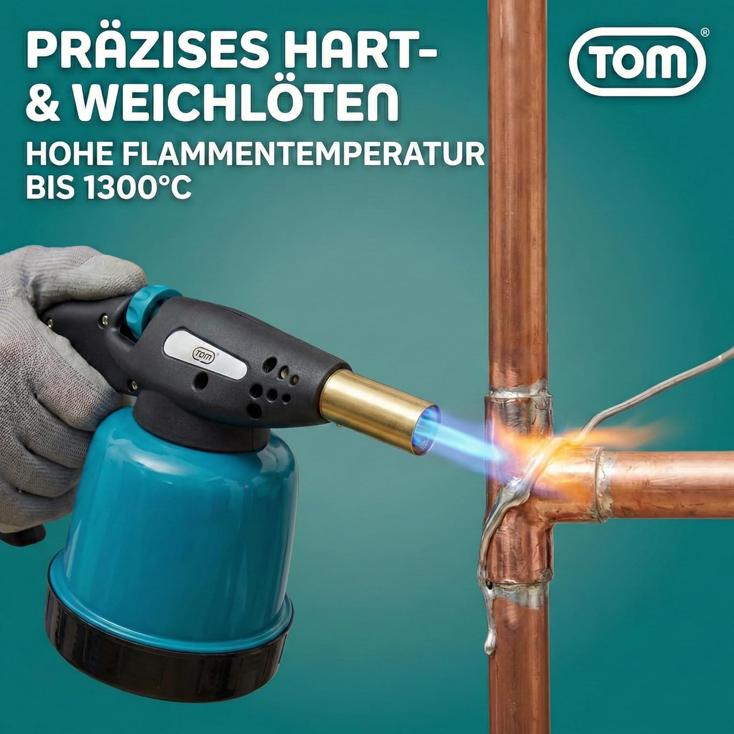Produktbeschreibung für das Produkt TOM Gas-Lötbrenner im Set – 1300°C