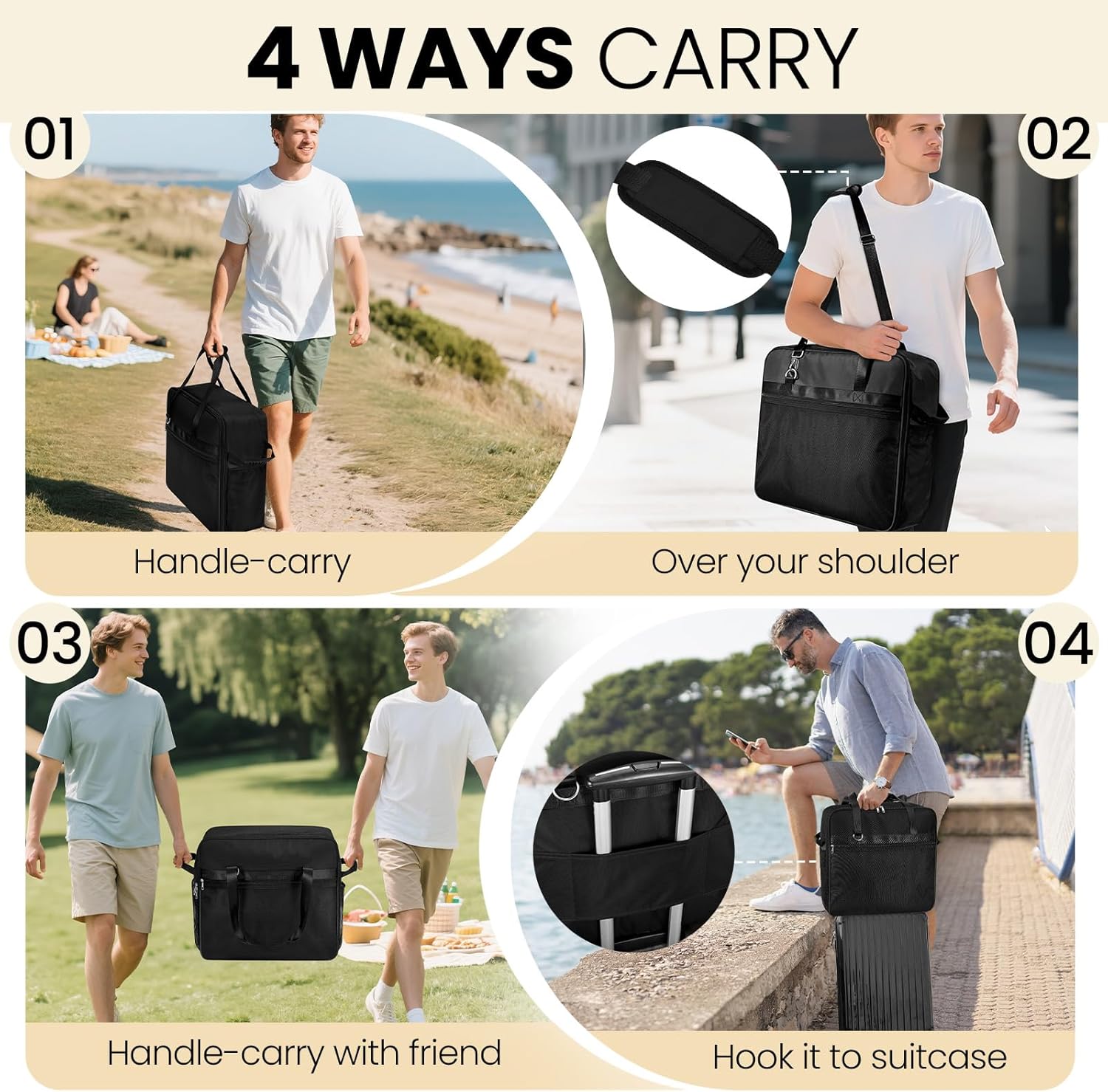 - Durchdachtes Ordnungssystem: Zwei integrierte, großzügige Netz-Außentaschen bieten Platz für Zubehör wie Tassen, Strohhalme und Reinigungsgut – so bleibt alles an einem Ort griffbereit.