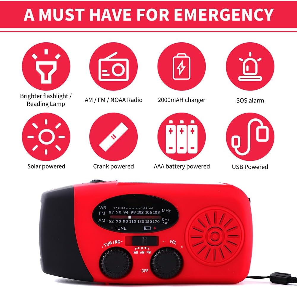 - Umfangreiche Nutzung: Nutzen Sie die der , eine Handkurbel oder ein USB-Kabel zum Aufladen Ihres Solarradios und genießen Sie maximalen . für Outdoor-Abenteuer Camping, Radfahren und Strandausflüge.