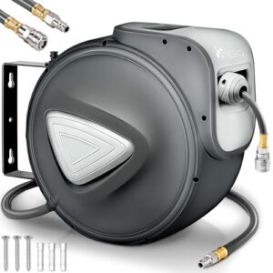 3 Rezensionen für TRESKO® 20m Druckluftschlauch Aufroller automatisch 1/4″ Anschluss | Schlauchtrommel Wandschlauchhalter Schlauchaufroller Druckluftschlauch-trommel, Grau