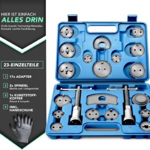 - Universelle Kompatibilität: Dank der 17 mitgelieferten Adapter deckst du nahezu alle gängigen Fahrzeugmarken ab und bist für verschiedene Bremssattel-Konstruktionen gerüstet.