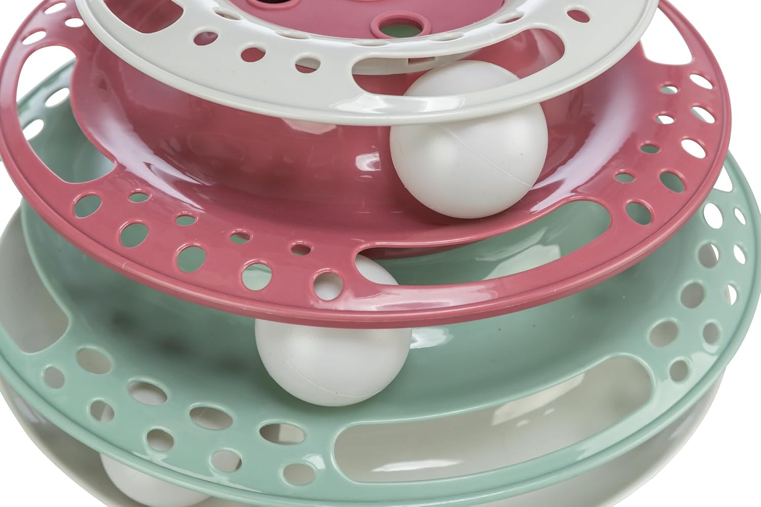 Unser Team hat getestet, wie schnell Katzen das Spielkonzept annehmen: Selbst eher ruhige Tiere zeigen bei den beweglichen Bällen sofort Interesse. Die Anordnung der drei Bahnen erlaubt es der Katze, ihre Strategie zu ändern – mal wird die untere Ebene bespielt, mal alle drei gleichzeitig. Ein technischer Hinweis: Das Produkt ist wartungsfrei, sollte jedoch bei Verschmutzungen durch Pfotenabdrücke oder Staub einfach mit einem feuchten Tuch gereinigt werden, um die Laufruhe der Bälle auf den Kunststoffschienen zu erhalten.