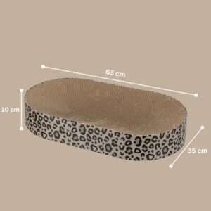 Mit den Maßen 63 × 10 × 35 cm bietet das Kratzbrett eine großzügige Fläche, die für die meisten Hauskatzen ideal geeignet ist. Es fördert die tägliche Aktivität Ihres Stubentigers und bietet einen festen Platz zum Krallenwetzen. Es ist eine unkomplizierte Lösung, um das natürliche Verhalten der Katze positiv zu unterstützen.