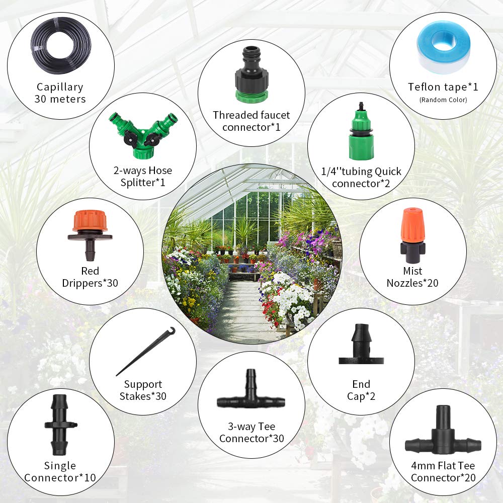 Dieses 30 Meter Tropfbewässerung Bewässerung Kit ist die ideale Lösung für Hobbygärtner und versierte Gartenbesitzer, die eine effiziente und präzise Wasserversorgung ihrer Pflanzen sicherstellen wollen. Es ermöglicht eine automatische, zeitsparende Bewässerung von Beeten, Terrassen und Gewächshäusern ohne manuelle Bewässerungskannen.