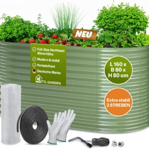 Das TTL GARDEN 160x80x80cm Nature M Metall Hochbeet richtet sich an Hobbygärtner und Gartenbesitzer, die Wert auf ergonomisches Arbeiten und langlebige Strukturen legen. Mit seiner durchdachten Konstruktion schaffst du ein rückenschonendes Anbauumfeld für Nutzpflanzen, Kräuter und Blumen. Dieses Beet überzeugt durch seine robuste Metallbauweise und bietet eine ideale Lösung für jeden, der maximalen Ertrag auf kleiner Fläche erzielen will.