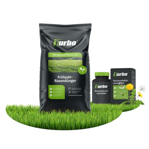 Turbogrün Rasendünger mit Unkrautvernichter, 500m²-Bundle, gesunder Rasen verdrängt Moos, Ideal für Frühjahr und Sommer, geeignet für Streuwagen, staubarmes Granulat, Rasen düngerTurbogrün Rasendünger mit Unkrautvernichter, 500m²-Bundle, gesunder Rasen verdrängt Moos, Ideal für Frühjahr und Sommer, geeignet für Streuwagen, staubarmes Granulat, Rasen dünger