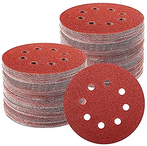 TWSTYFAL 100 Stück Schleifpapier 125mm Klett, Profi Exzenterschleifer Schleifpapier Set für 125mm 8 Loch Schleifscheiben Mit 60/80/100/120/180/240/320 Körnung für Holz Metall und Farbe