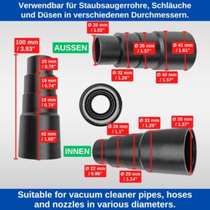 - Variable Anschlussgrößen: Durch die 4-stufige Abstufung (Außen Ø 41–26 mm / Innen Ø 35–22 mm) deckst du alle Standarddurchmesser ab.