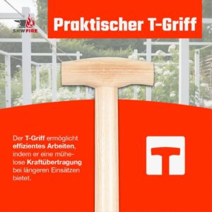 - PREMIUM ESCHENHOLZSTIEL AUS HEIMISCHEN WÄLDERN – Der extra lange Stiel aus heimischem Eschenholz liegt perfekt in der Hand und sorgt für eine optimale Krafteinteilung. Durch den ergonomischen T-Griff kannst du besonders bequem arbeiten, ohne abzurutschen. Ideal für längere Arbeitseinsätze im Garten.