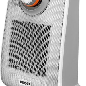 Gegen Feuchtigkeit im Bad ist er dank Tropfwasserschutz bestens gewappnet: der Keramik-Heizlüfter Bad von UNOLD. Dazu kommt er dynamisch mit Schwung daher, denn zur besseren Luftverteilung dreht er sich oszilierend um 75 Grad. So kommt mit jeder Drehung warme Luft in alle Ecken. Das 2-Stufen-Keramik-Heizelement gibt entweder 1.200 oder 2.000 Watt Heizleistung ab. Der Heizlüfter schaltet sich automatisch ab, sollte er einmal umfallen. Die Gerätetemperatur wird stufenlos durch ein Thermostat kontr