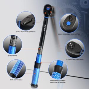 Upgrade Drehmomentschlüssel Auto 1/2 Zoll, 20-220 NM Einstellbar Drehmomentschlüssel Fahrrad, ±3% Fehlergenauigkeit, 72 Zähne Drehmoment-schlüssel für Auto, torque wrench Motorrad Reparatur –
