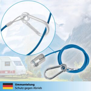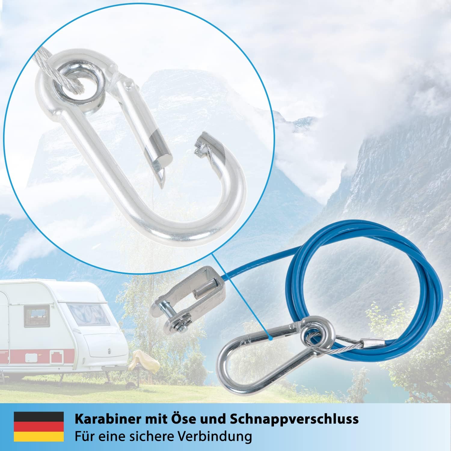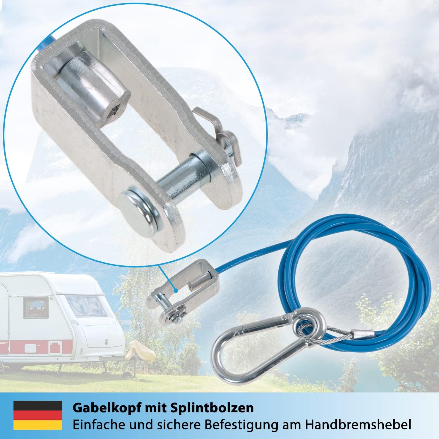 Bei der Konstruktion wurde auf Langlebigkeit geachtet. Der Kern besteht aus einem robusten, verzinkten Stahlseil. Die blaue PVC-Ummantelung schützt nicht nur vor Feuchtigkeit und Streusalz, sondern verhindert auch das Verkratzen der Deichsel oder des Fahrzeughecks. Mit einem Durchmesser von 2,5 mm ist das Seil kompakt genug für enge Führungsösen, aber stark genug, um im Notfall die erforderliche Kraft auf die Auflaufbremse zu übertragen.