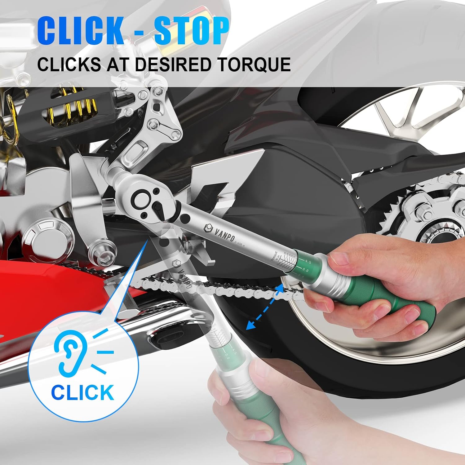 Der VANPO Drehmomentschlüssel 3/8″ ist das ideale Werkzeug für ambitionierte Hobbyschrauber und Mechaniker, die bei Wartungsarbeiten an Fahrrädern, Motorrädern oder im Automobilbereich präzise Ergebnisse erzielen wollen. Mit seiner feingliedrigen Einstellung von 5-60 Nm deckt er genau den Bereich ab, bei dem Bauteile aus Aluminium oder Carbon sonst durch zu viel Kraft beschädigt werden könnten. Ein zuverlässiger Begleiter, der Sicherheit und Langlebigkeit in einer soliden Konstruktion vereint.